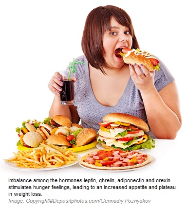 - Imbalance among leptin, ghrelin (hunger hormone), adiponectin, and orexin.