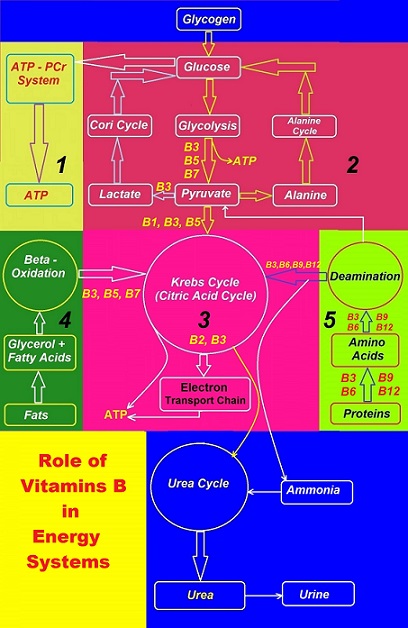 In order to understand the importance of micronutrients in a weight loss program, we have provided you vitamin B group as an example. You could see the role and importance of vitamin B group in the energy systems on the energy map (see below). Your energy systems are the “metabolic mills” of your body by which you could metabolize macronutrients.
