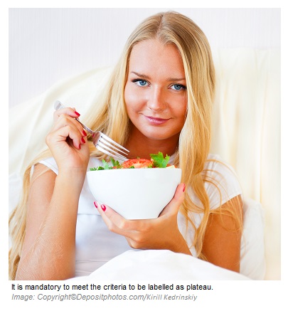 Initial weight loss followed by failure to lose weight for 3 weeks or more despite following nutritional advices is called “weight loss plateau”. Basically, this definition applies to people who follow a diet only and do not exercise.